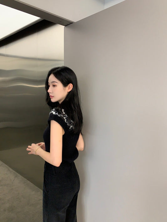 Wed. 軟糯鎖編復古緹花顯瘦針織上衣 黑/白