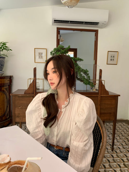 Wed. 鄉村田野 甜妹木耳邊氣質襯衫 白