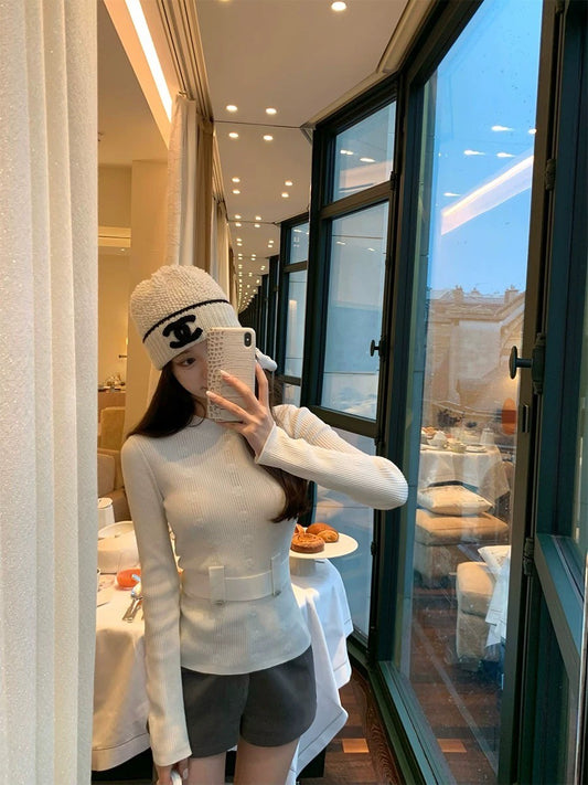Thu.Jennie看秀同款 小香氣質腰帶緹花針織上衣 藍調時刻/氣質白