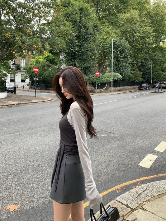 Fri.疊穿瘦瘦早八人 背心長袖上衣兩件組 灰