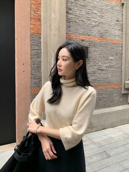 Fri. 韓國氣質堆堆領 7分袖針織上衣 杏
