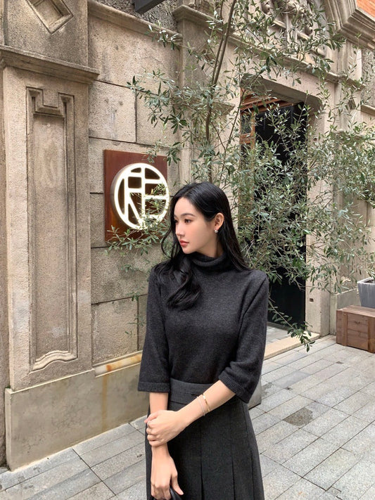 Fri. 韓國氣質堆堆領 7分袖針織上衣 灰