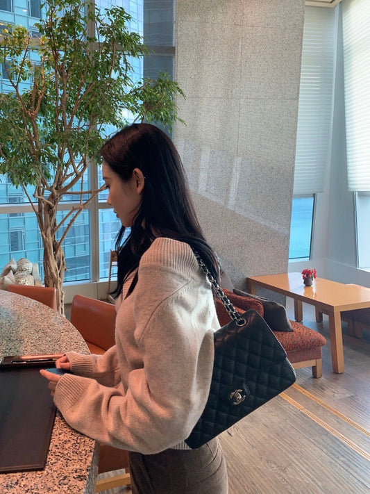 Fri. 節日氛圍 法式大翻領綁帶腰身針織上衣 黑