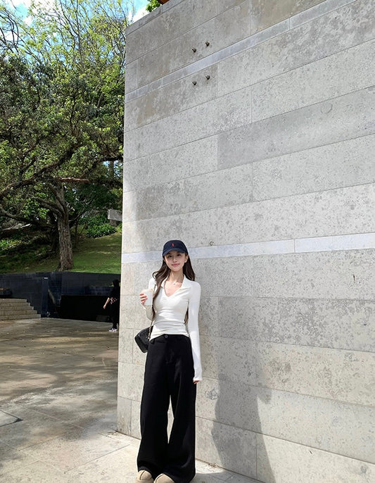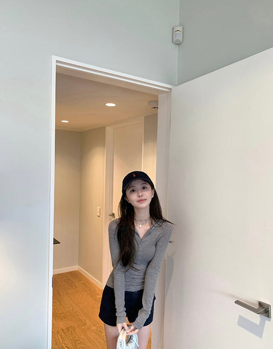 • Tue. 經典打底 純棉polo領純色修身上衣 灰/白