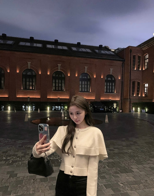 Wed. 斗篷騎士 設計感假兩件式鈕扣針織上衣 白