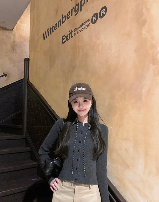 • Tue. 眠眠doll 時髦撞色領可拆針織上衣 灰