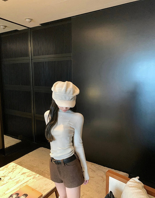 Wed. 舒適底牌 修身高領純色羊毛打底上衣 白
