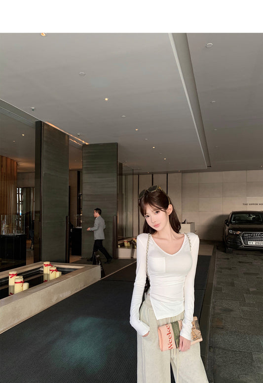 Wed. 口袋不規則下擺開叉修身彈力上衣 3色