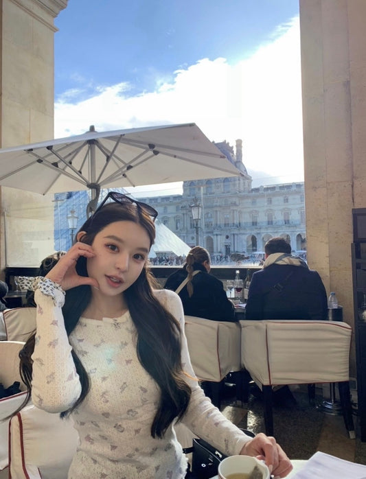 • Thu. 香家乖乖女 烤邊特殊機織打底針織上衣 印花款 長/短袖