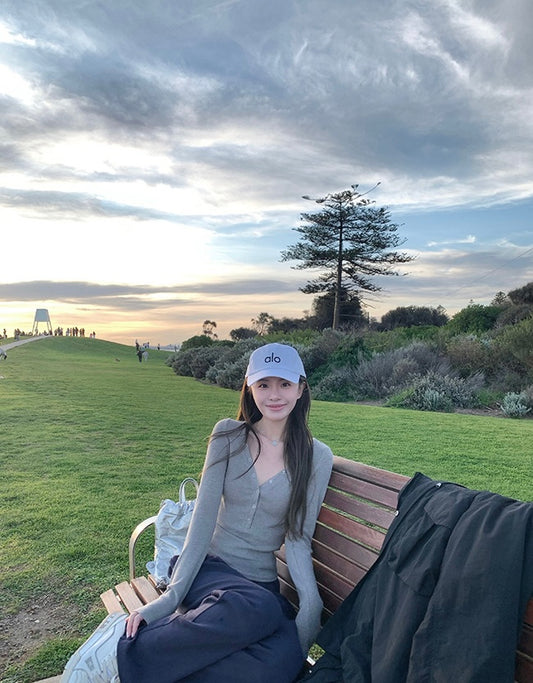 Wed. 精緻cail girl設計感v領修身長袖上衣 灰
