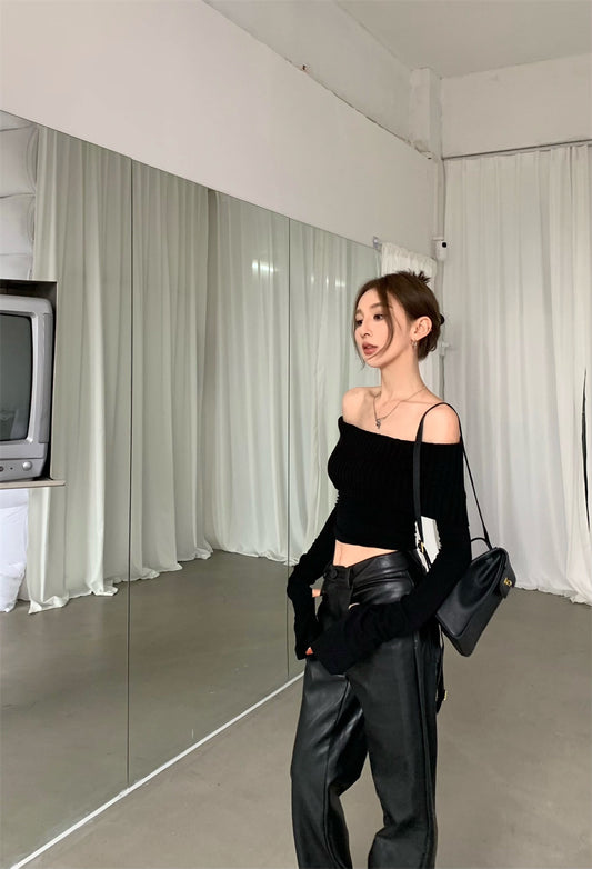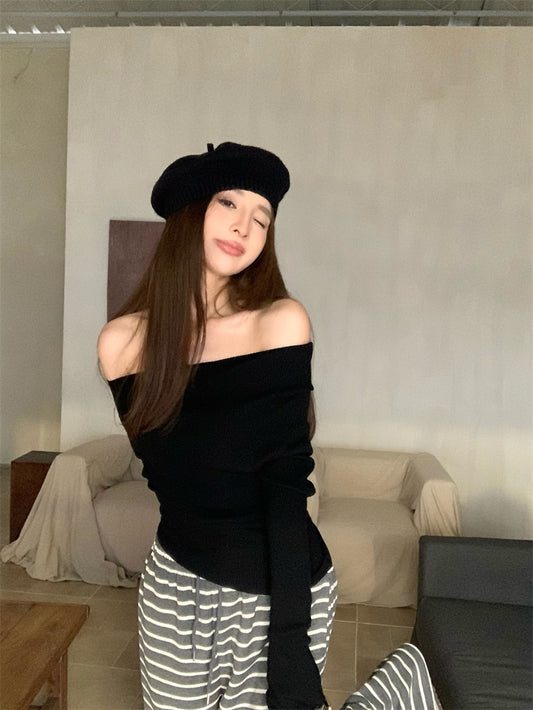 • Wed. 慵懶氣質一字肩針織上衣 黑