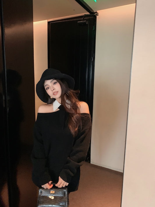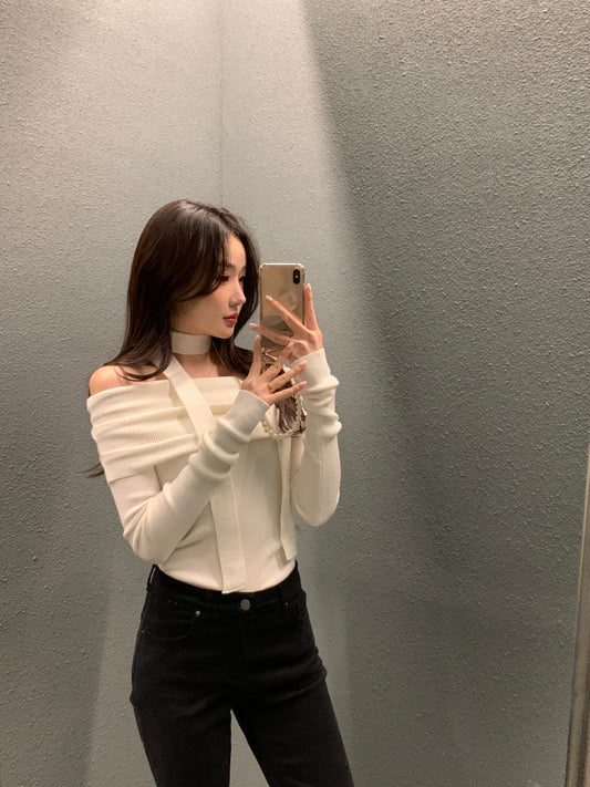 Fri. ''Autumm 慵懶時髦''可拆領露肩針織上衣
