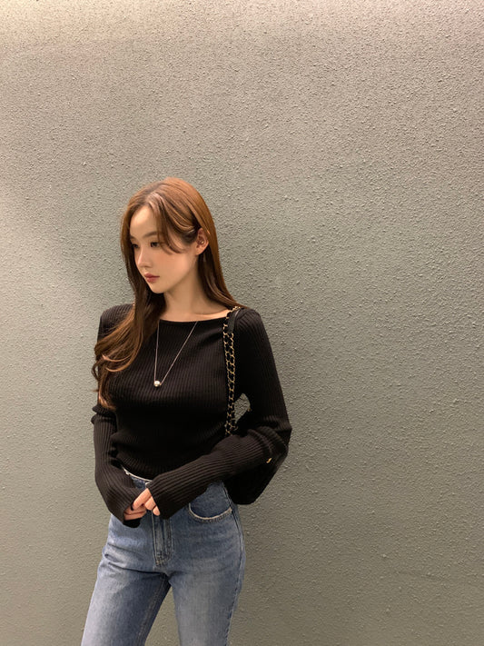 Tue. 溫柔簡約一字設計針織上衣 黑
