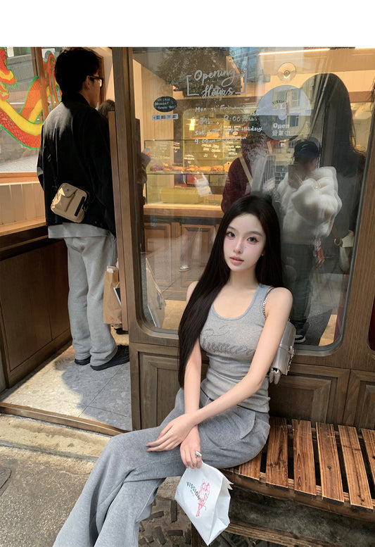 Fri. 辣妹閃鑽字母緊身顯瘦上衣 灰