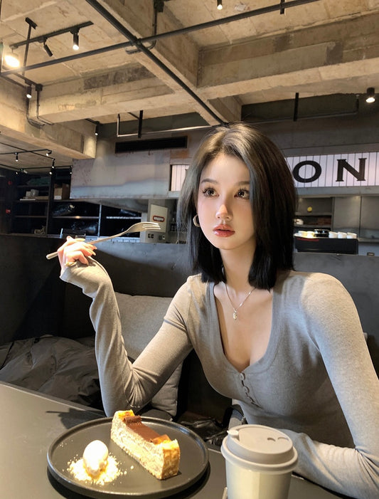 Fri. 通勤百搭純色v領小心機設計上衣 黑/白/灰