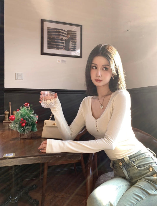 • Fri. 通勤百搭純色v領小心機設計上衣 黑/白/灰