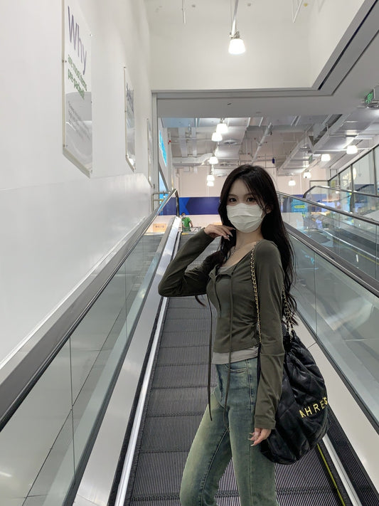 Tue. 圓領打底鈕扣垂墜兩穿上衣 綠/黑