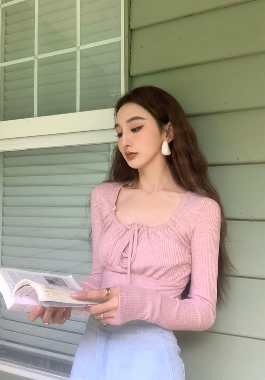 Wed. 溫柔復古方領綁帶上衣