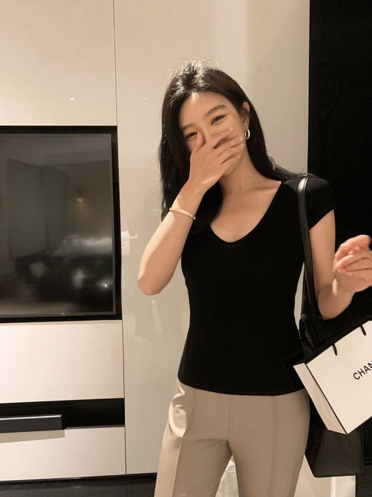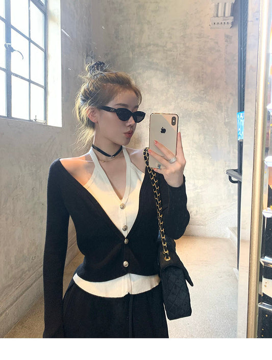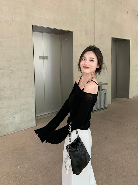 • Sat. 自留款2件式露肩V領上衣 黑白