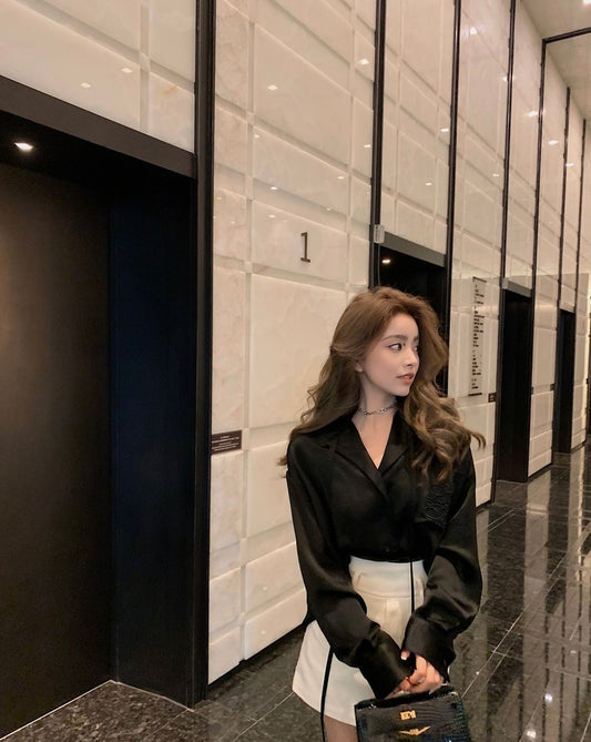 • Sat. 簡約通勤A字高腰裙 黑/白