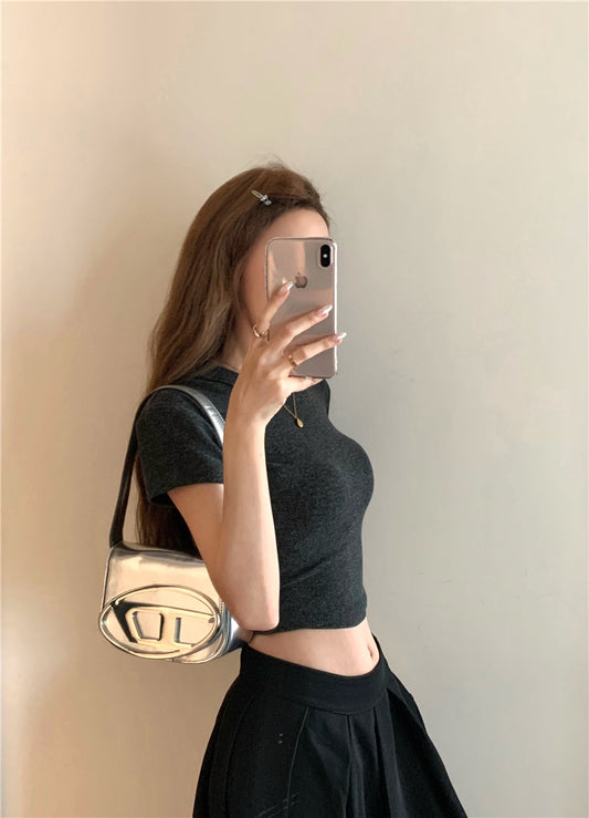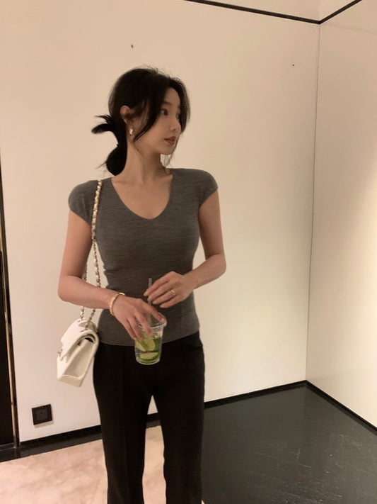 Tue. 氣質圓領腰側綁帶針織上衣 灰