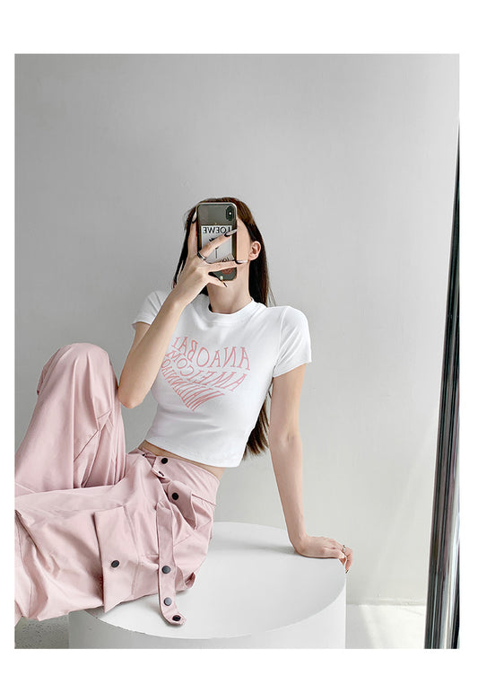 • Wed. 線條塗鴉花邊打底衣 休閒褲 米色/黑
