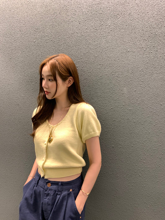 Tue. 泡泡袖針織圓領上衣 雞蛋花