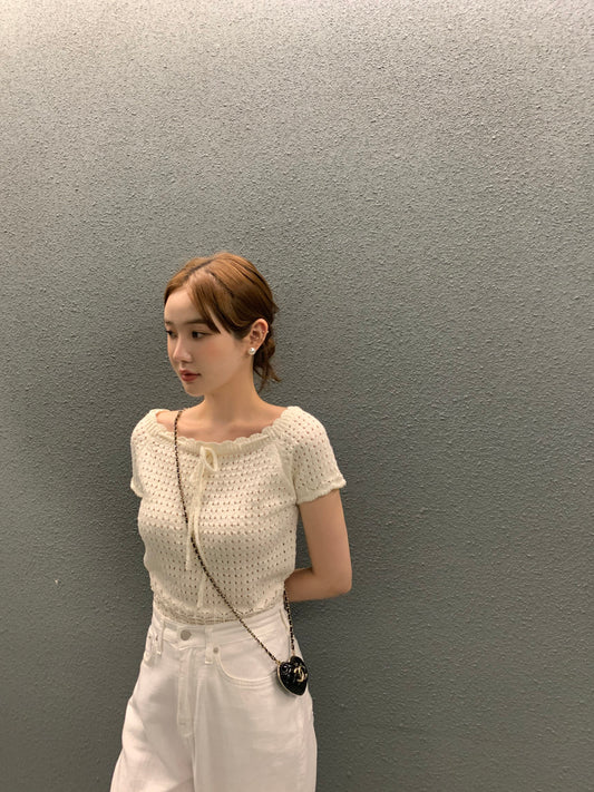 Sun. 縷空花邊蝴蝶結上衣 白