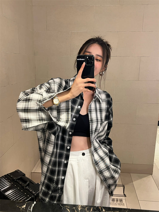 Tue. 港風寬鬆格紋襯衫
