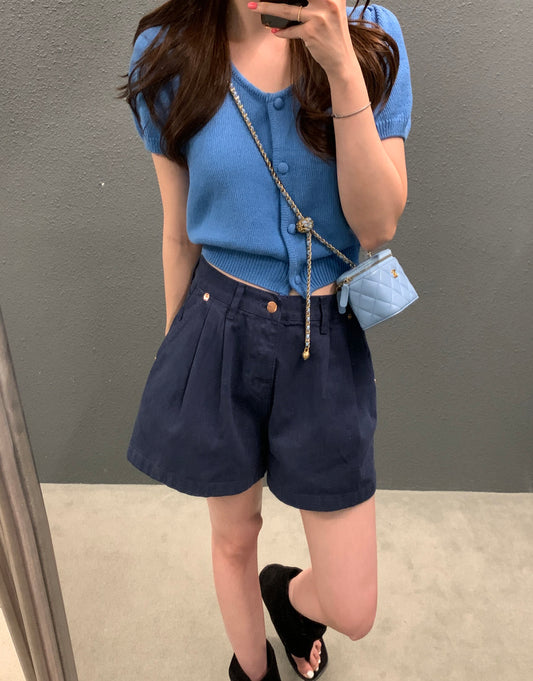 Tue. 泡泡袖針織圓領上衣 藍
