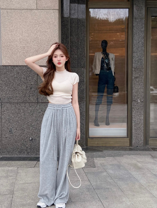 Wed. 顯瘦羊毛高領短袖上衣 米白