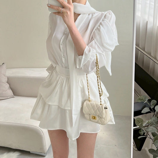 • Fri. 韓chic氣質荷葉泡泡袖襯衫上衣
