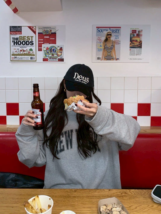 • Thu. 復古休閒字母印花圓領衛衣 灰