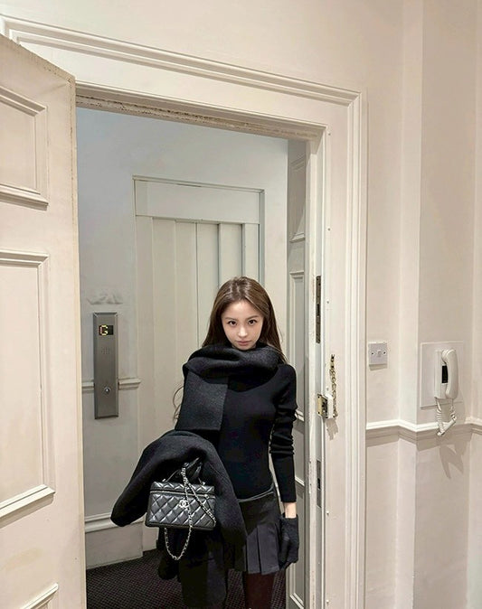 • Fri. 柔膚打底羊毛多織工藝上衣 黑/米白