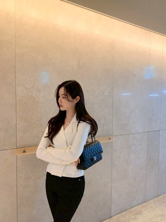 • Thu. 簡約西裝針織雙排扣上衣 白/黑