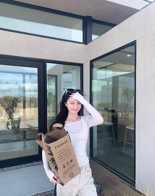 Thu. 博主氛圍 斜肩抓皺基礎純色上衣 白/黑
