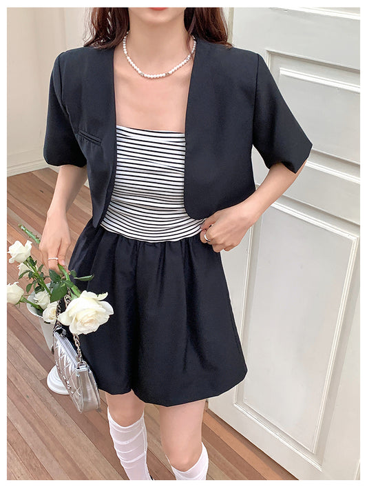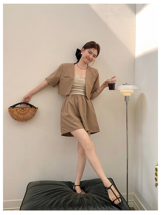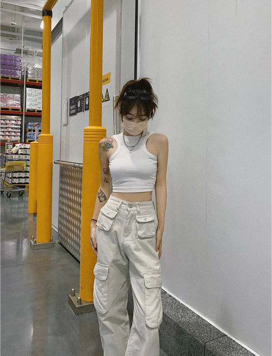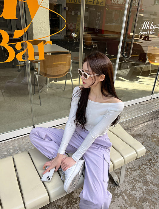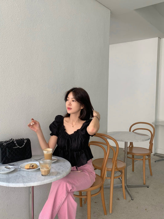 Fri. 美式短板上衣-粉 車縫修身喇叭褲