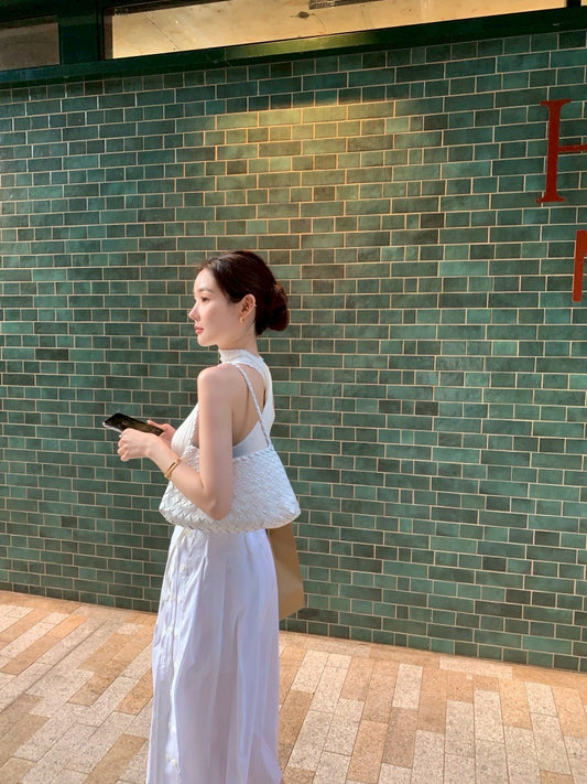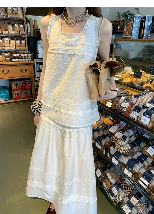 • Fri. 法式氣質邦苔美女圓領背心高腰半身裙套裝 白