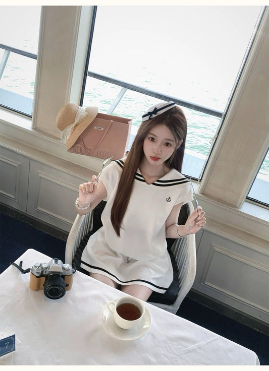 • Mon. 薄荷語條紋水手蝴蝶領上衣半身裙套裝