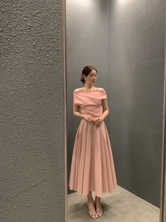 Thu. 溫柔韓chic 兩穿顯瘦背心 高腰A字擺半身裙 粉