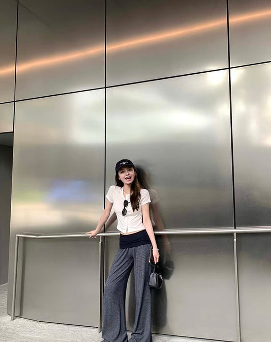 Mon. 橘子汽水 甜妹格紋內搭 休閒褲兩版型 白色外罩衫