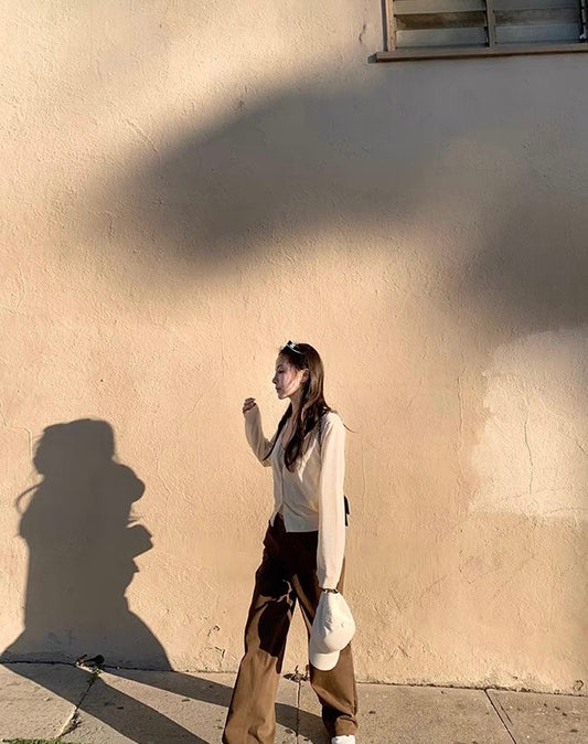 Mon. 百搭簡約美式直筒修身工裝褲 美式咖色