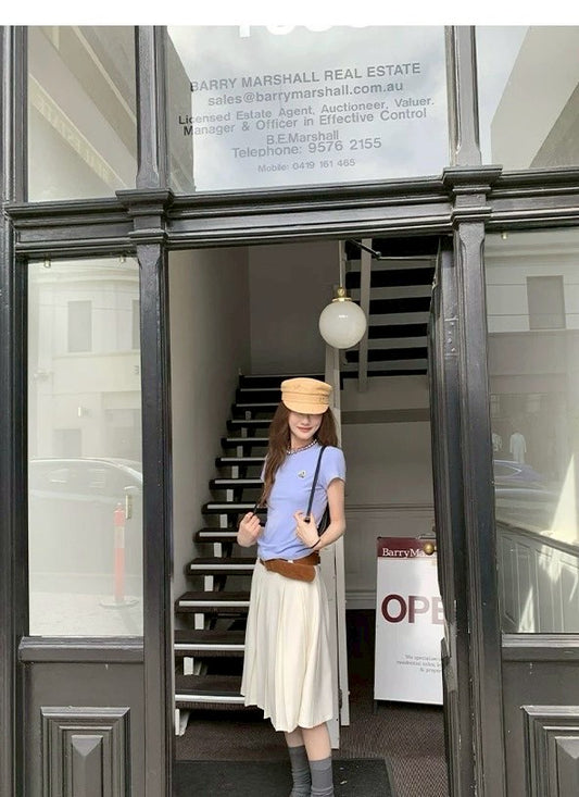 • Fri. 東京明景休閒百褶高腰西裝半身裙 米白