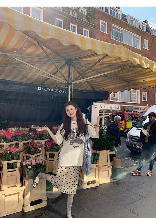 Fri. 海鹽列車復古波點花邊半身裙 中長款/短款