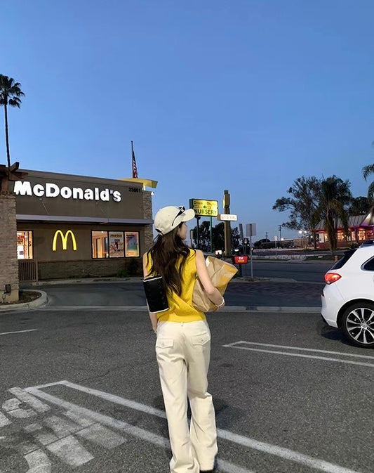 • Mon. 百搭簡約美式直筒修身工裝褲 水泥白