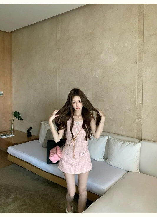 Fri. 香氛馬卡龍甜心小香半身裙套裝 粉