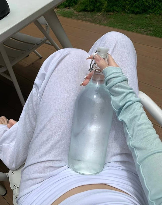 Mon. 隨心搭休閒褲系列 顯瘦翻邊垂垂休閒褲 白