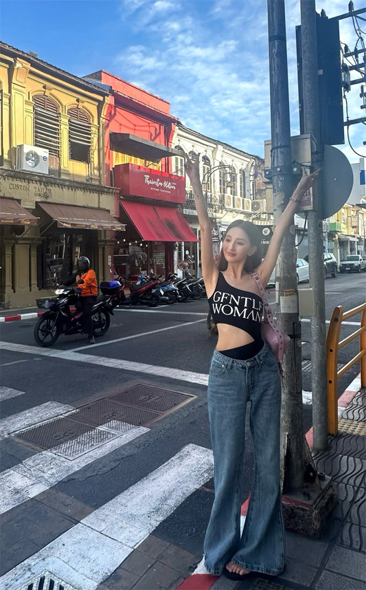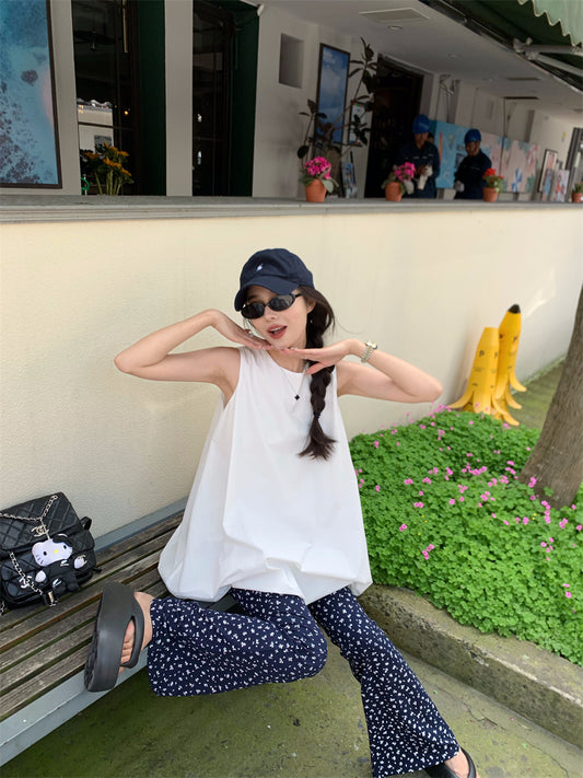 Thu. 簡約百搭休閒花苞背心上衣裙 碎花喇叭褲