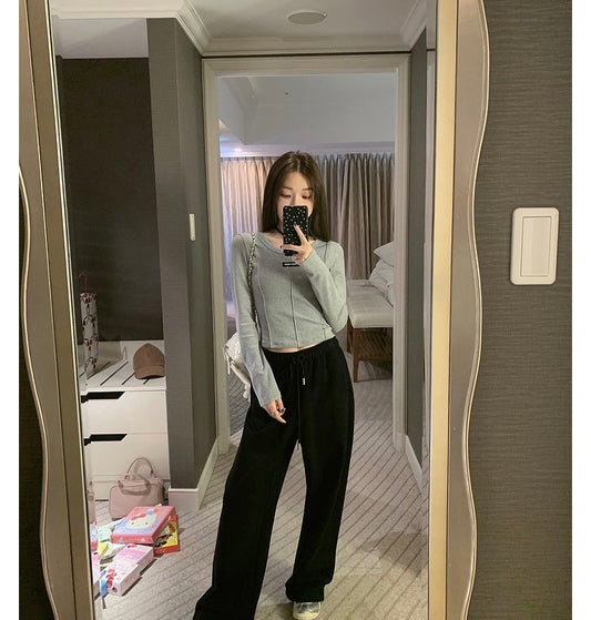 Mon. 休閒實穿加絨休閑落地褲 灰/黑