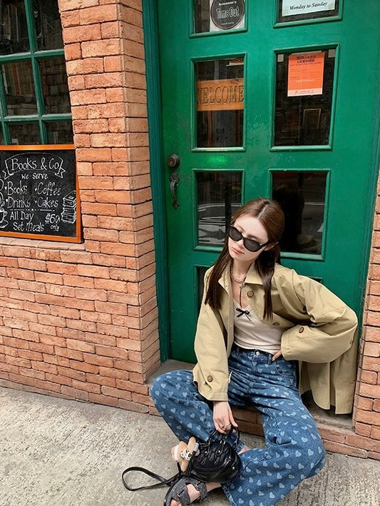 Sun. 粉彩粗花呢編織小香外套 愛心牛仔褲